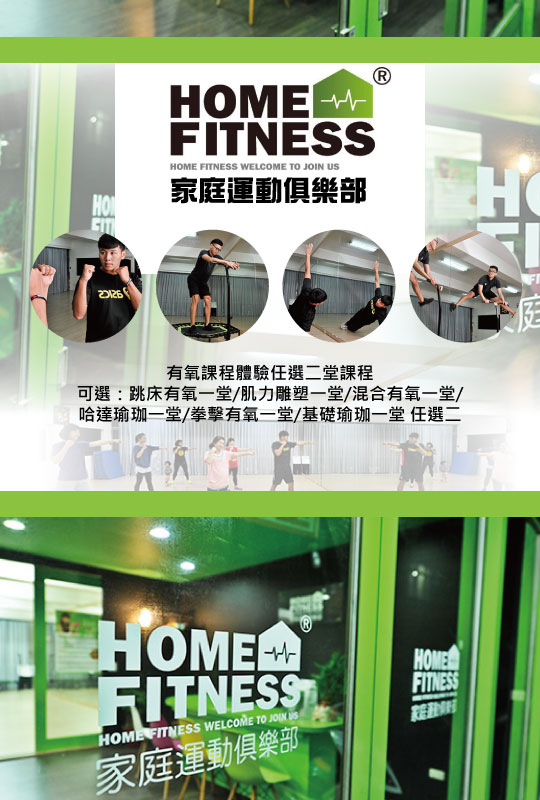 【HOME FITNESS家庭運動俱樂部】有氧課程體驗任選二堂課程,拳擊有氧、跳床有氧、肌力雕塑等多元豐富的課程,快揪親朋好友來~一起跟著老師動滋動!